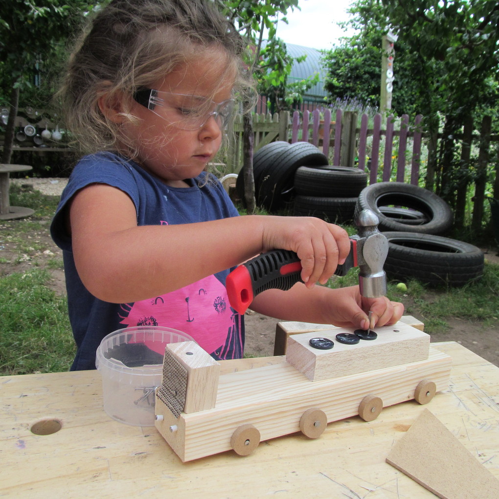 Woodwork really stands out for me because of the high and sustained levels of engagement and the sheer enjoyment it provides. It is hugely popular with children and provides a profound learning experience. To come into a setting and hear the sounds of children happily hammering and sawing away, and to see them deeply engaged is a real delight. Visiting teachers always comment on their deep levels of concentration and engagement, and are further surprised to find the same children still deeply focused working on their creations an hour or two later. It is not unusual children to spend all morning at the woodwork bench. Woodwork really engages hands, minds and hearts.